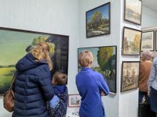 На выставке представлены разноплановые работы - пейзажи, натюрморты, портреты.